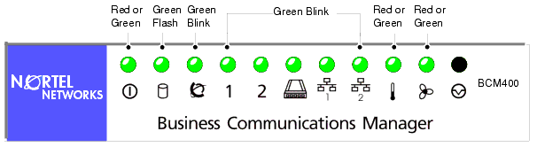 Status: Blinking Green = one or more telephony service failed, or not yet loaded